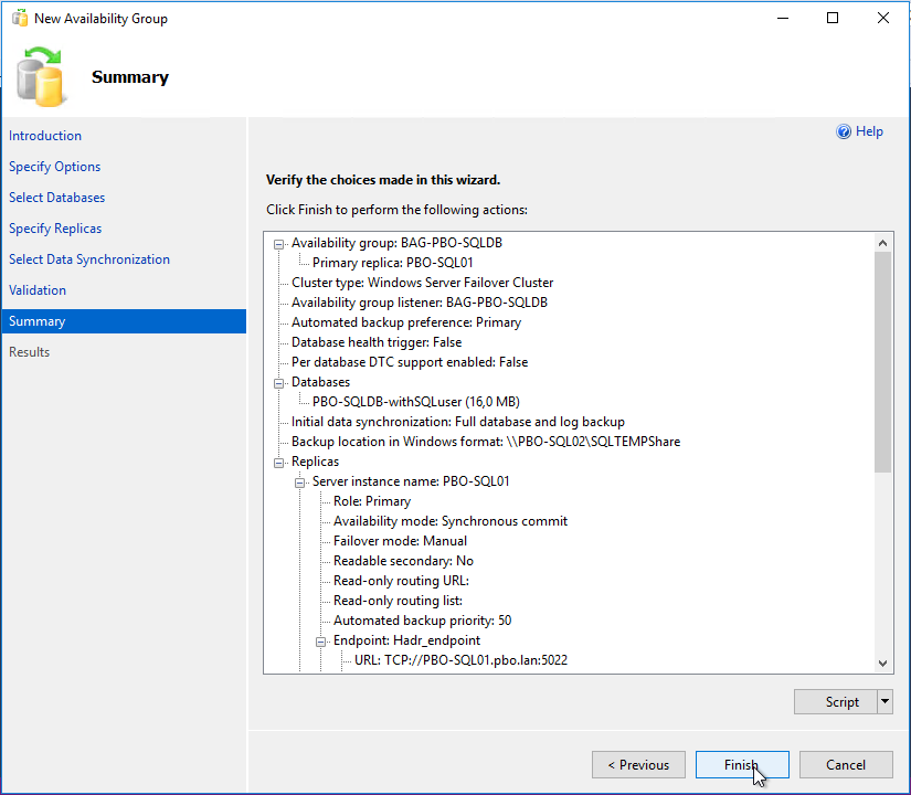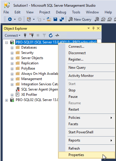 When testing the ODBC-resource with PBO-SQL02 as primary SQL Replica server: